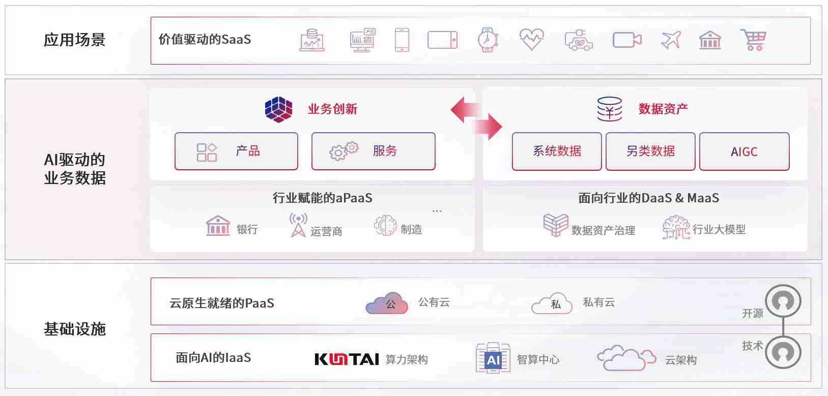 数字时代,,围绕企业数字化转型的关键要素,,,,尊龙z6数码开创性的提出数云融合战略和技术体系框架,,,着力在云原生、、、数字原生、、AI原生和信创产业上架构产品和服务能力,,,,为处在不同数字化转型阶段的快消零售、、、、汽车、、、、金融、、、、医疗、、、、政企、、、教育、、、、运营商等行业客户提供泛在的敏捷IT能力和融合的数据驱动能力,,,构建跨界融合创新的数字业务场景和新业务模式,,助力企业级客户建立面向未来的核心能力和竞争优势,,,,全面推动社会的数字化、、智能化转型升级。。。。